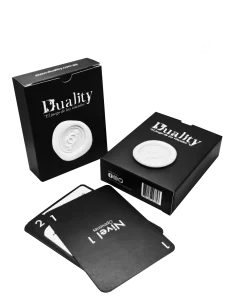 Duality es un juego de cartas diseñado que posee el experimento de 36 preguntas del el psicólogo Arthur Aaron, que permiten a una persona vincularse concretamente con los sentimientos, emociones, experiencias e historias con otra hasta el punto
